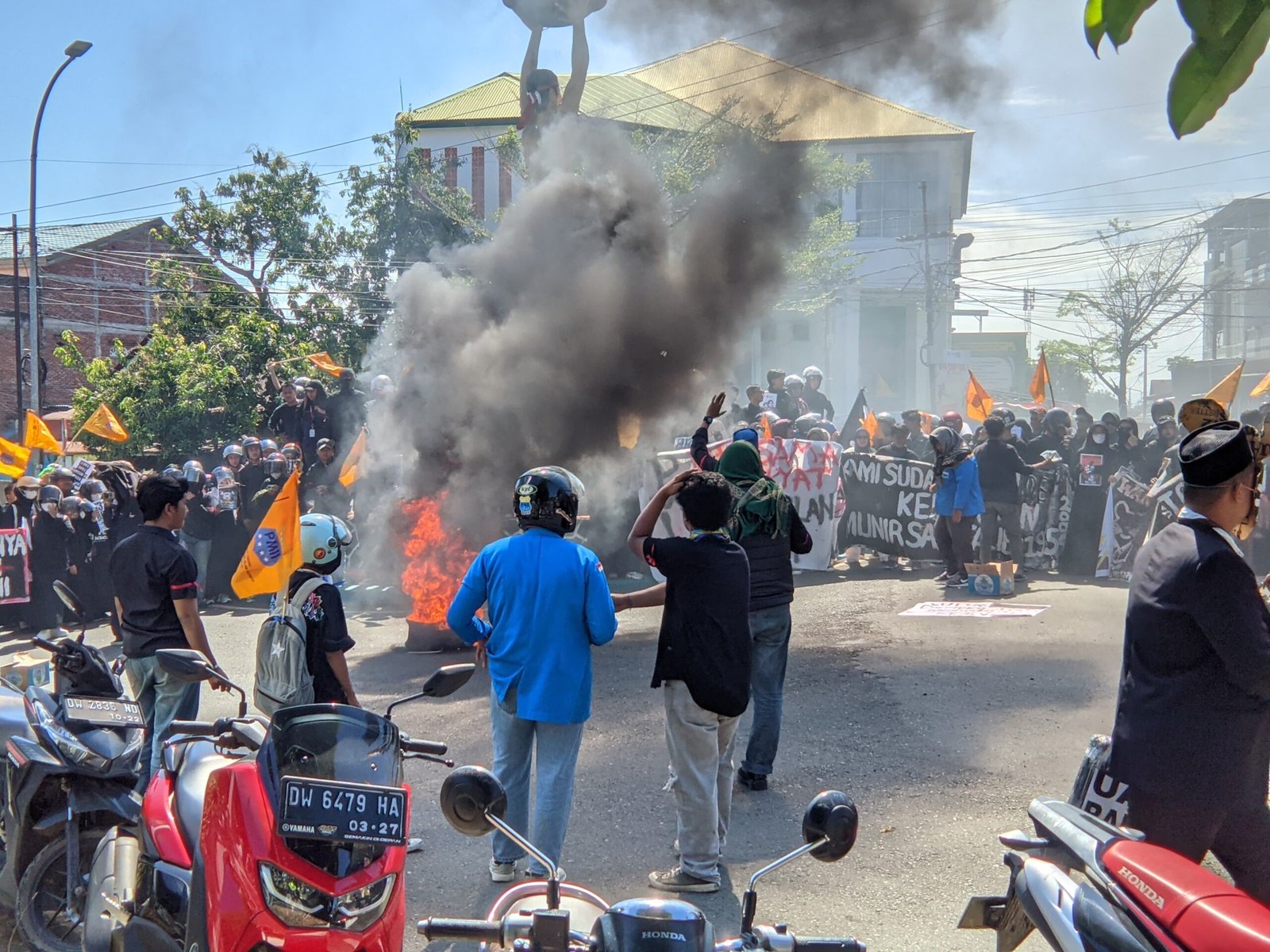 Mereka membawa keranda, menaburkan bunga, hingga membacakan doa Yasin sebagai simbol “matinya hati nurani wakil rakyat”.