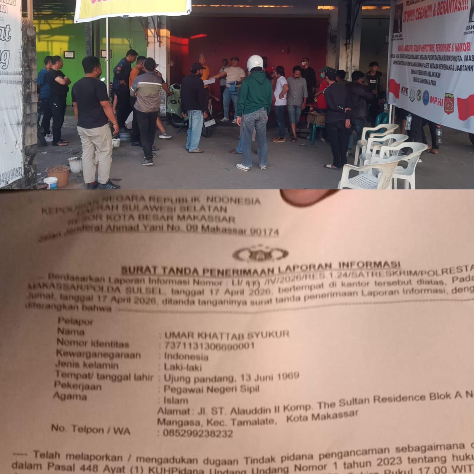 MAKASSAR, INFOUPDATE -Seorang wartawan TVRI Sulawesi Selatan, Umar Khattab Syukur, melaporkan dugaan tindak pengancaman yang dialaminya ke Polrestabes Makassar.