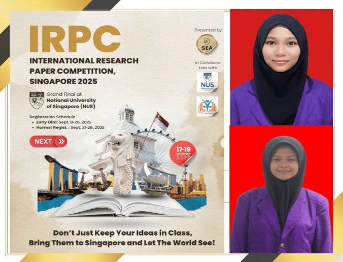 Mereka adalah Aisa Fitri (Semester7) dan Nikita Pramuda (Semester 3), mahasiswa dari program studi Pendidikan Bahasa Inggris (PBI), yang lolos sebagai finalis International Reseach Paper Competition (IRC) Season 3 yang di selenggarakan oleh National University of Singapura(NUS), Senin 13/10/2025.