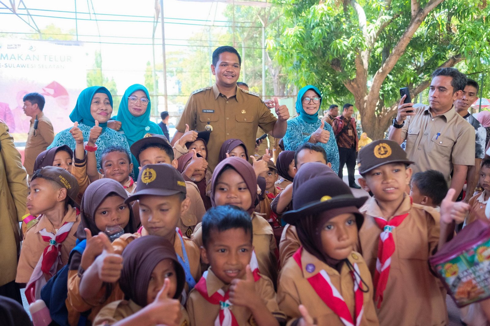 BANTAENG, INFOUPDATE – Bupati Bantaeng, M. Fathul Fauzy Nurdin, berbaur dengan 400 siswa yang terdiri 350 siswa Sekolah Dasar dan 50 siswa Taman Kanak-kanak dalam pelaksanaan Gerakan Gemar Makan Telur, yang digelar di Lapangan Tenis Pelti Bantaeng, Jl. Raya Lanto. Selasa, 14 Oktober 2025.