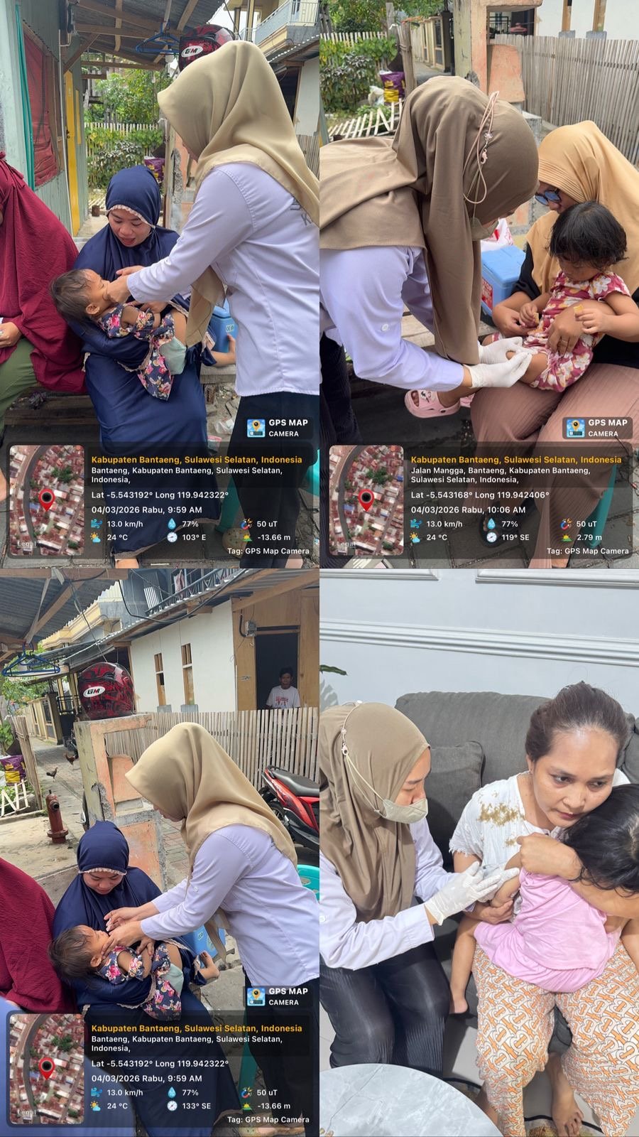 BANTAENG, INFOUPDATE – Tim Imunisasi UPT Puskesmas Kota melaksanakan imunisasi rutin di Posyiandu Flamboyan dan Kemala. Rabu, 04 Maret 2026