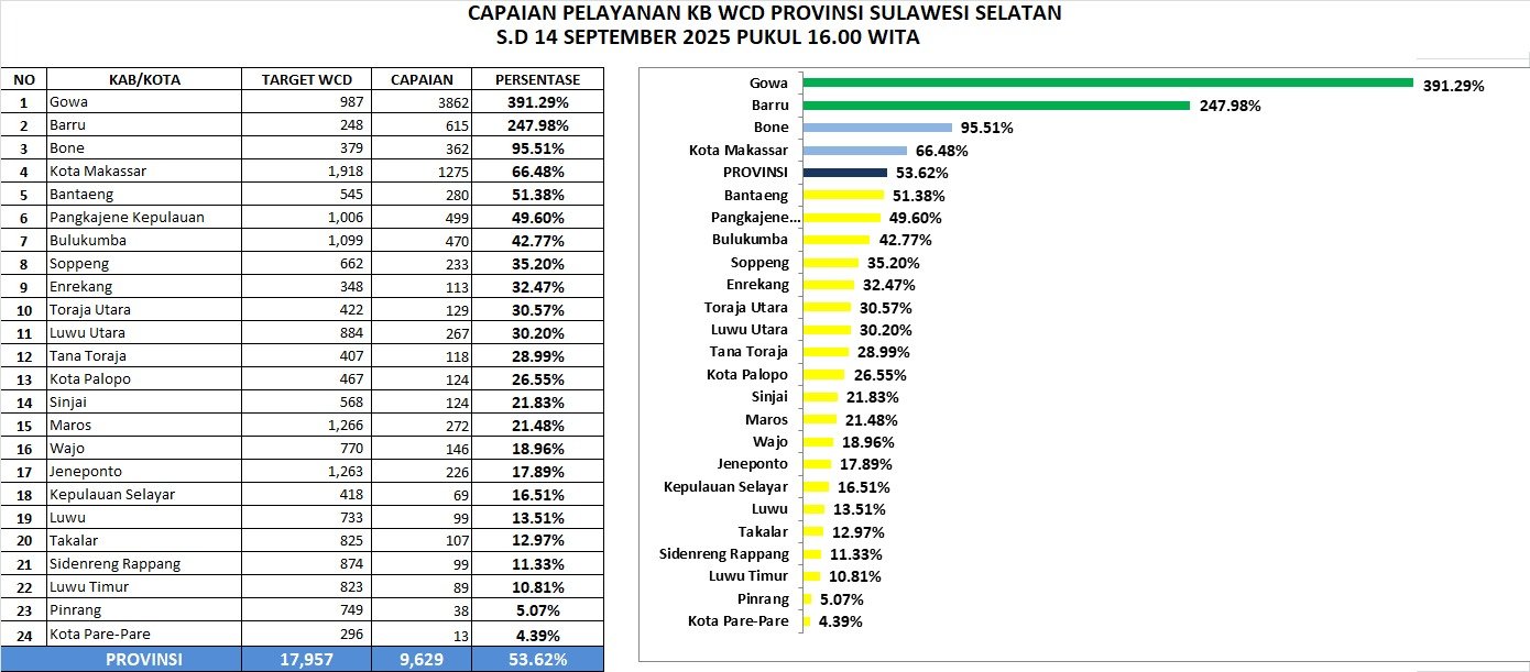 Data resmi Perwakilan BKKBN Provinsi Sulawesi Selatan menunjukkan lonjakan tersebut jauh melampaui target provinsi yang baru ditetapkan sebesar 50 persen pada 19 September 2025. Dengan demikian, Jeneponto berhasil mencapai dan bahkan melampaui target tiga hari lebih cepat dari jadwal.