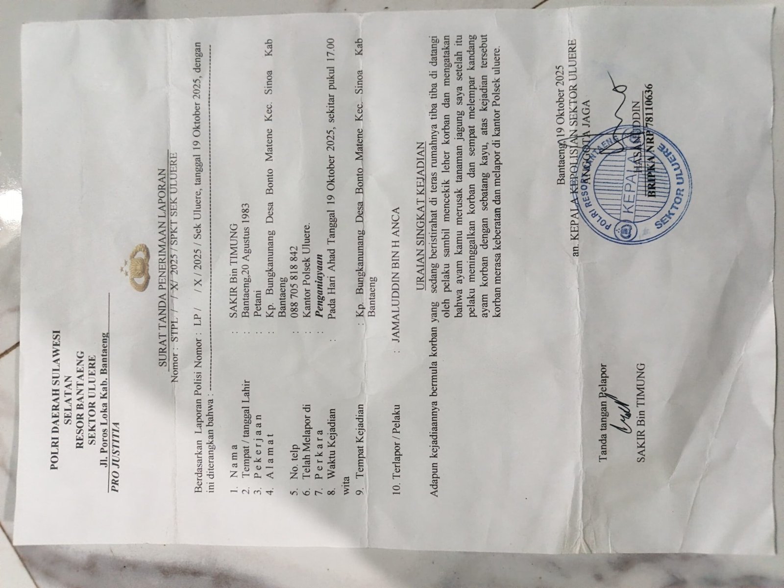 Kapolsek Uluere Ipda Daeng Masinna menjelaskan bahwa kasus tersebut sudah diserahkan ke Reskrim Polres Bantaeng. Menurutnya bahwa Kanit Reskrim Polsek Uluere tidak bisa menyidik karena terkendala aplikasi Dors