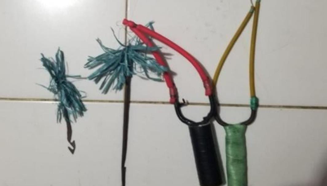 “RM membuang kantongan yang berisi 1 ketapel dan 3 busur. Saat digeledah dan diinterogasi, RM mengakui barang itu miliknya,” jelas Syuryadi