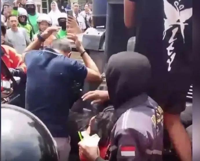 Video penangkapan D (29) di indekosnya viral. Dalam rekaman, polisi tampak berjibaku menghalau massa ojol yang geram dan berusaha menghakimi pelaku.