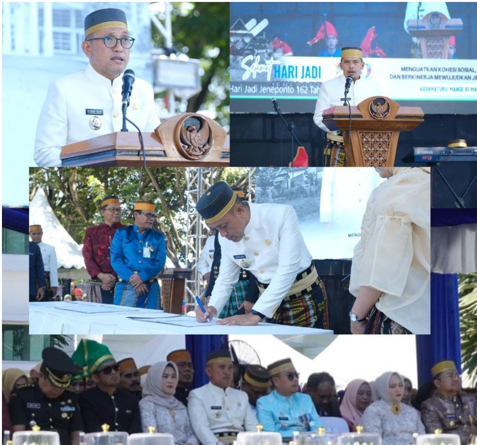 JENEPONTO, INFOUPDATE.ID – Puncak perayaan Hari Jadi Kabupaten Jeneponto ke 162 yang berlangsung khidmat dan meriah, di halaman Kantor Bupati, Jalan Lanto Dg Pasewang, Kamis, 1 April 2025.