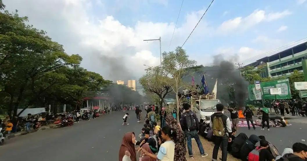 Unjuk rasa diwarnai aksi bakar ban dan orasi secara bergantian. Lewat pengeras suara, mahasiswa menegaskan Amarah bukan sekadar sejarah kelam.