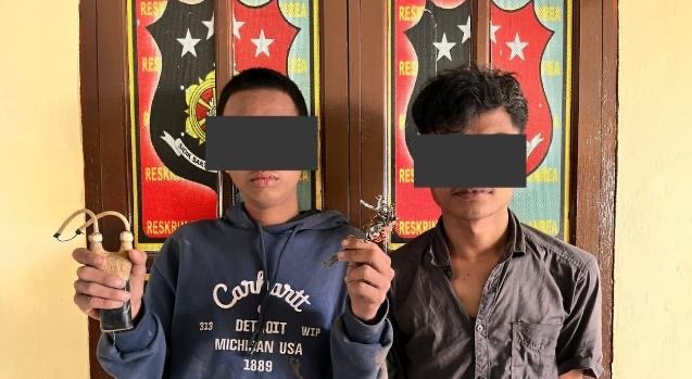 Saat menyadari aksinya ketahuan, mereka sempat tancap gas. Namun pelarian mereka tidak jauh karena petugas keamanan berhasil mengejar dan meringkusnya. Dari lokasi, polisi menyita satu ketapel busur, dua anak busur, dan motor Yamaha Vino DD 6419 PV yang dipakai pelaku.