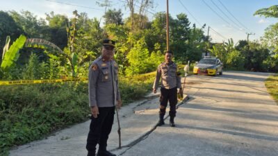 BARRU, INFOUPDATE – Kapolsek Tanete Riaja Iptu. Mudhaffar bersama Bhabinkamtibmas memasang police line pada area badan…