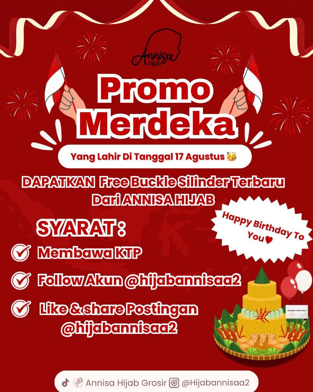 Promo merdeka cashback 2025 diadakan di Toko Annisa hijab yang ada di Makassar,Jalan Pangeran Diponegoro,No.54 Makassar. (Achank)